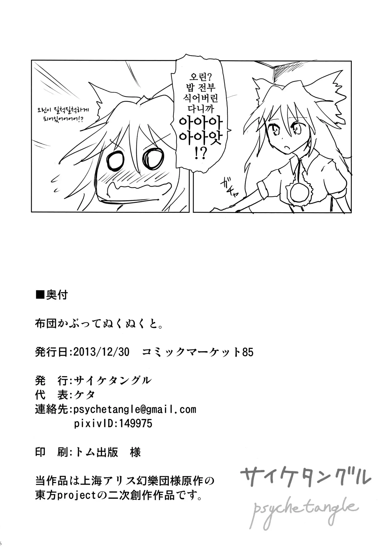 (C85) [Psychetangle (Keta)] Futon Kabutte Nuku Nuku to. (Touhou Project)